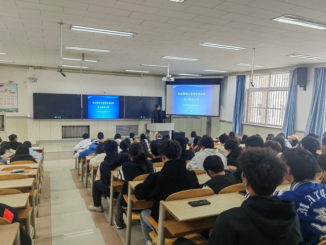 在立信201阶教组织了《工程大讲堂》第十一期活动。第十一期以“全过程项目管理咨询实践”为题,邀请了山西嘉泽项目管理有限公司副总经理赵强做主题报告。2023级工程管理、工程造价、房地产开发与管理专业的150余名本科生和相关专业教师参加活动,会议由麻将消消乐