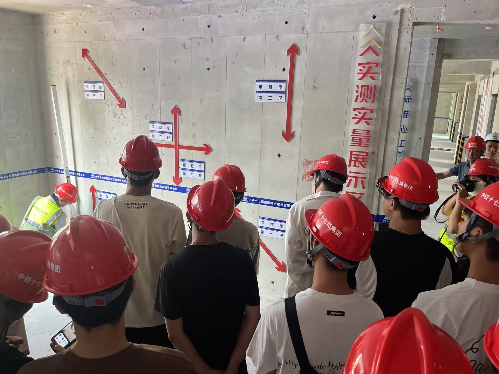 党委副书记陈霞、房地产开发与管理专业教研室副主任任洪浩、辅导员刘秉馨带领下,全体房地产开发与管理专业学生赴中铁十七局在建项目工地开展实地教学。这是麻将消消乐