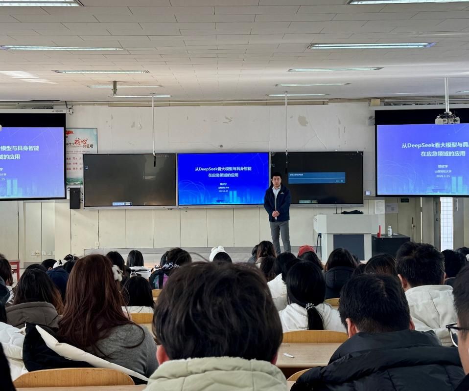 胡欣宇副教授以《智慧应急:大模型与具身智能在应急领域的融合应用》为题,生动阐释人工智能技术在风险预测、态势感知、辅助决策和机器人救援等方面的应用前景,描绘出“智能技术+应急管理”的未来图景,激发了同学们对科技赋能应急管理的兴趣与思考。