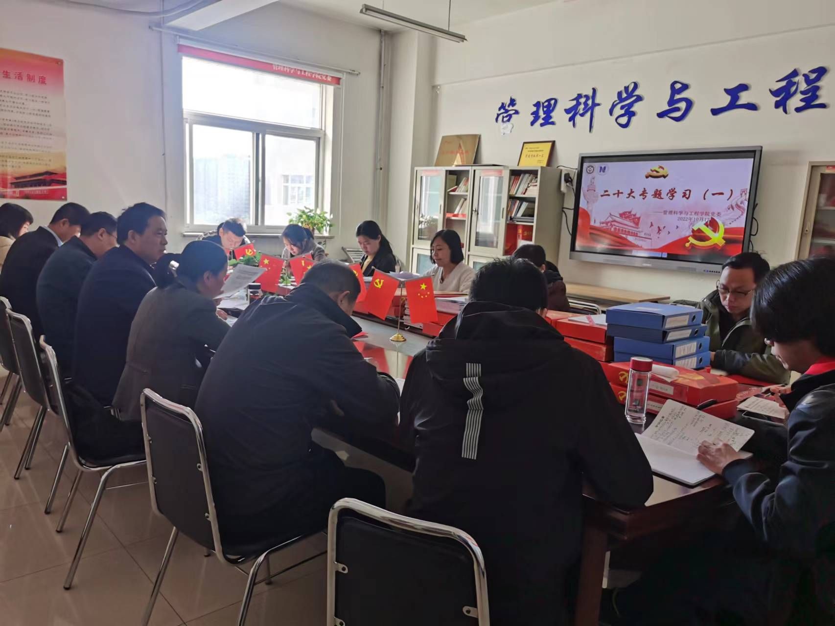 党委理论学习中心组开展专题学习会,全体党政领导班子成员、支部书记参加集体学习,深入领会党的二十大精神。