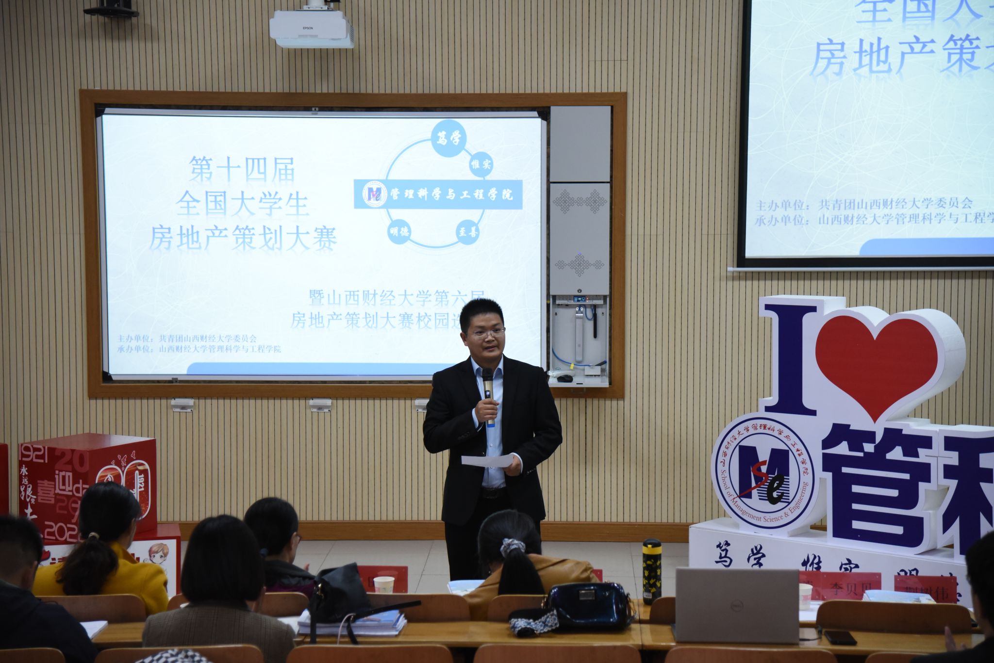 团委学生会承办的第十四届全国大学生房地产策划大赛暨山西财经大学第六届房地产营销策划大赛在修德楼202阶梯教室举行。山西易居房地产经纪有限公司人力资源经理、研发部总监、麻将消消乐