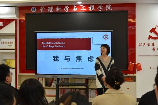特邀学工部心理健康咨询中心刘佳老师担任主讲人,为大家分享心理健康知识。刘佳老师围绕学业发展、职业发展、心理健康三个方面展开讲解,介绍了心理治疗、药物治疗、生活管理等方法解决心理疾病,引导同学们身心全面和谐发展和素质全面提高。