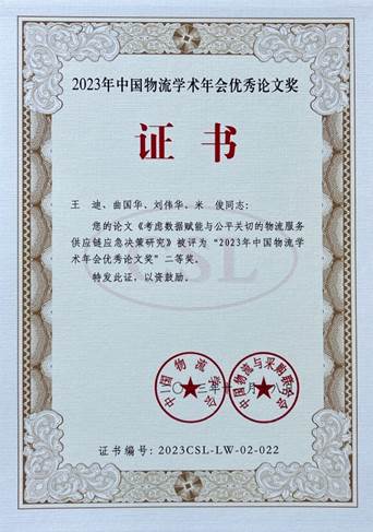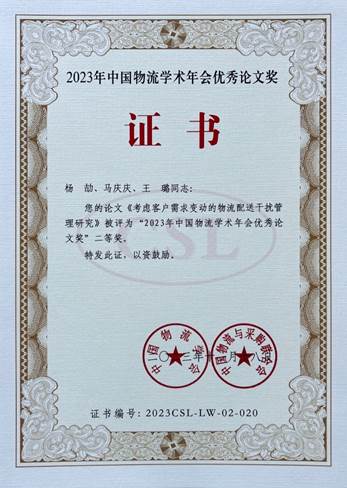 王迪、杨劼老师分别提交了题为《考虑客户需求变动的物流配送干扰管理研究》《考虑数据赋能与公平关切的物流服务供应链应急决策研究》的学术论文,两位老师同时斩获论文二等奖;白鹏锐老师提交了与物流工程与管理专业硕士研究生共同完成的“两业协同与区域经济关系“课题研究报告并获得课题研究三等奖。自2020年以来,麻将消消乐