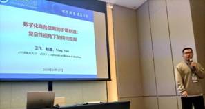 中国地质大学王飞博士从复杂性视角就“数字化商务战略的价值创造”的研究框架进行了详细解读,并介绍了其近期的研究进展,吸引了很多年轻学者的研究兴趣。