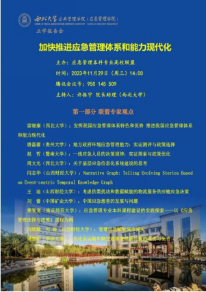 )承办的“加快推进应急管理体系和能力现代化”集体讨论会成功召开,本次会议采用腾讯会议方式,会议报告分为联盟专家组和西北大学研究生组两个部分。山西财经大学麻将消消乐