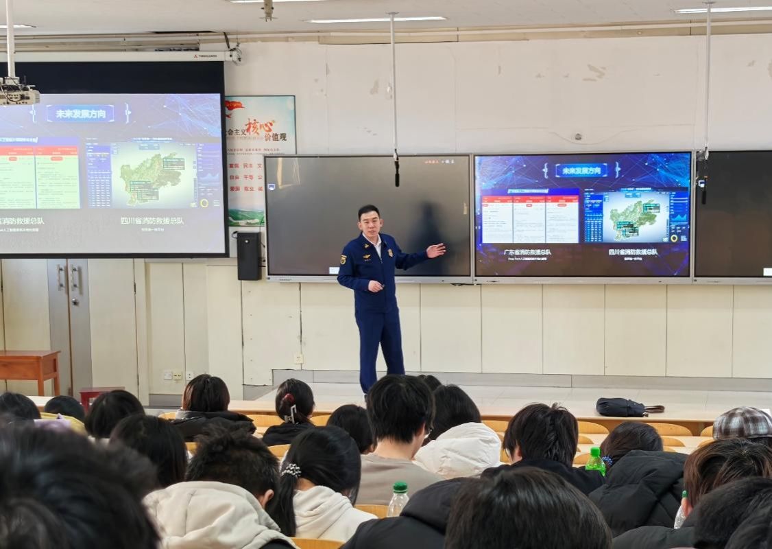 胡欣宇副教授以《智慧应急:大模型与具身智能在应急领域的融合应用》为题,生动阐释人工智能技术在风险预测、态势感知、辅助决策和机器人救援等方面的应用前景,描绘出“智能技术+应急管理”的未来图景,激发了同学们对科技赋能应急管理的兴趣与思考。