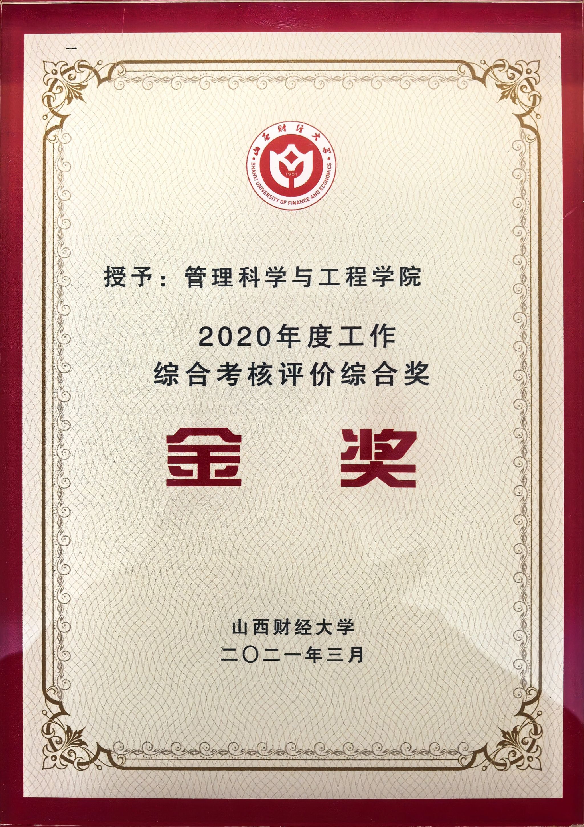 2020年我院获山西财经大学工作综合考核评价优秀单位金奖。
