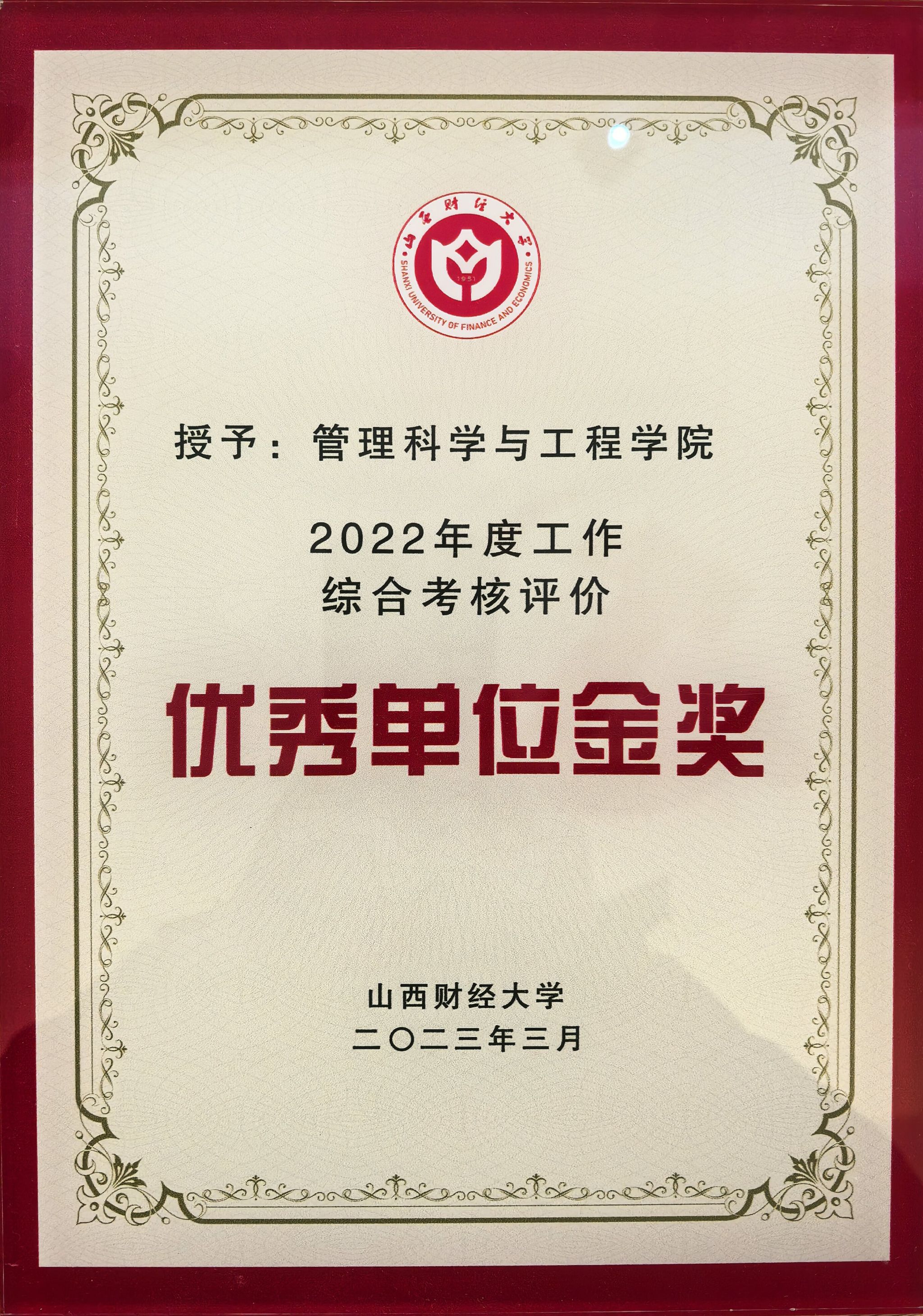 2022年我院获山西财经大学工作综合考核评价优秀单位金奖。