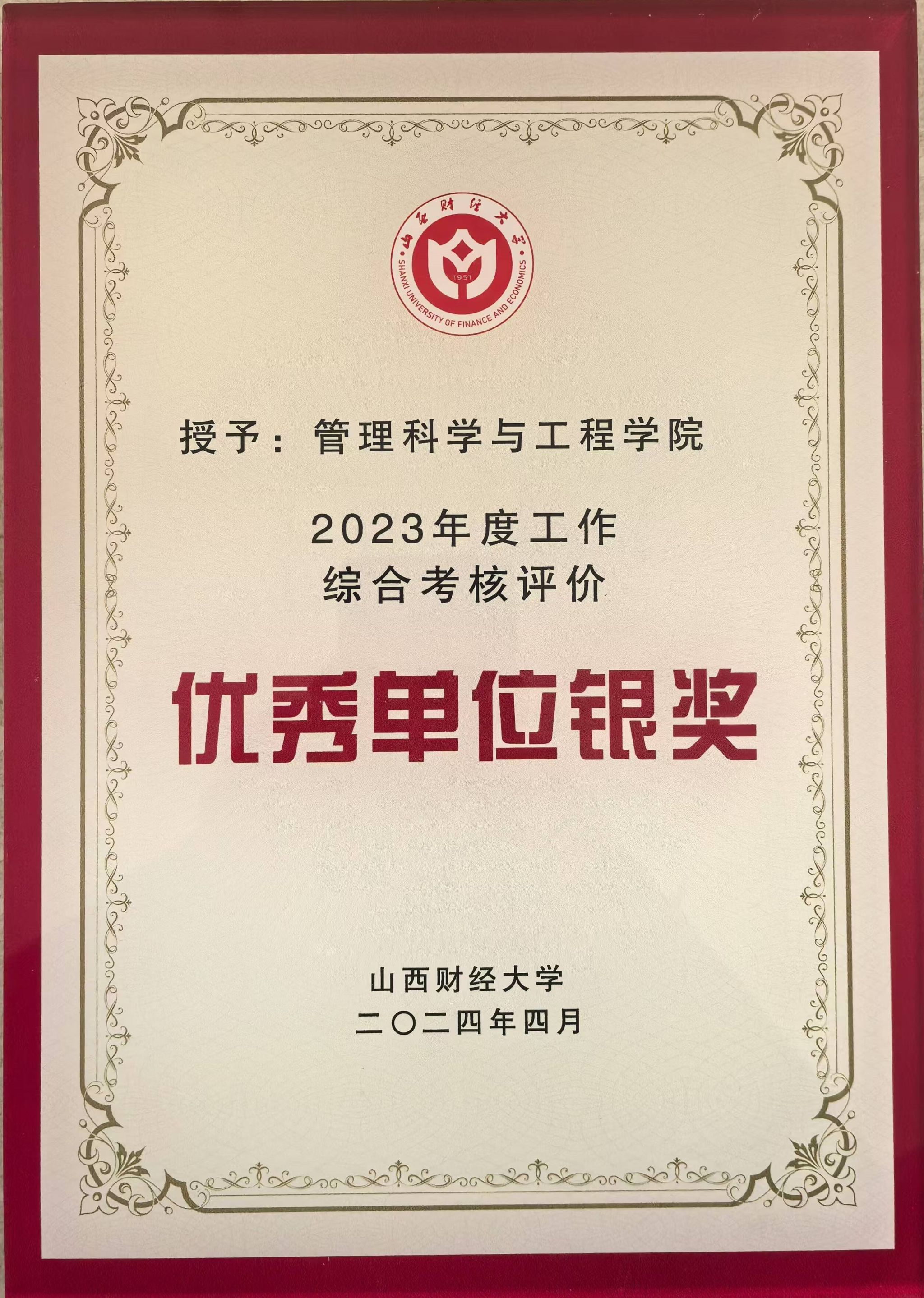 2023年我院获山西财经大学工作综合考核评价优秀单位银奖。